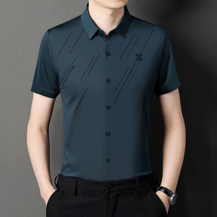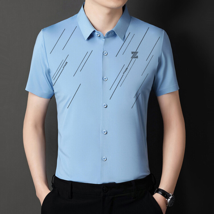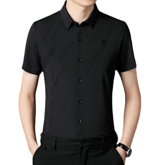夏季短袖新款男士無痕襯衣潮免燙抗皺中青年商務純色薄款襯衫男裝
