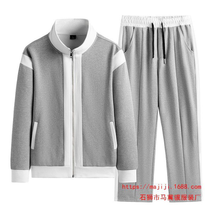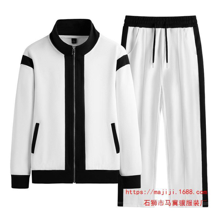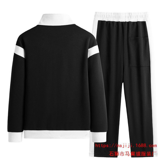 男2025春秋季青年潮流休閒拼色立領兩件套運動男套裝休閒百搭