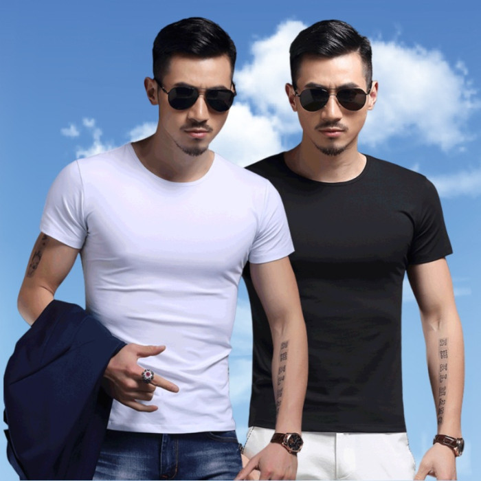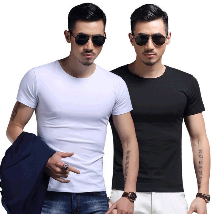 春裝莫代爾男士短袖t恤夏季白色修身打底衫冰絲純色半袖上衣男裝