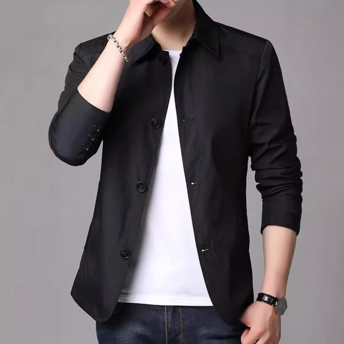 秋季男士長袖外套中青年新款翻領休閒百搭爸爸裝上衣夾克男外衣