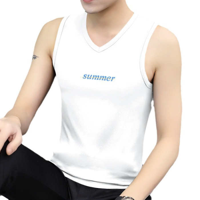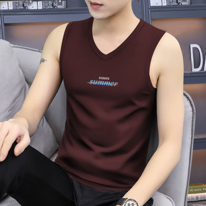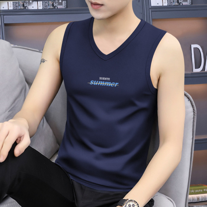 夏季V領男士寬肩背心修身運動健身無袖t恤跑步坎肩新款打底汗衫