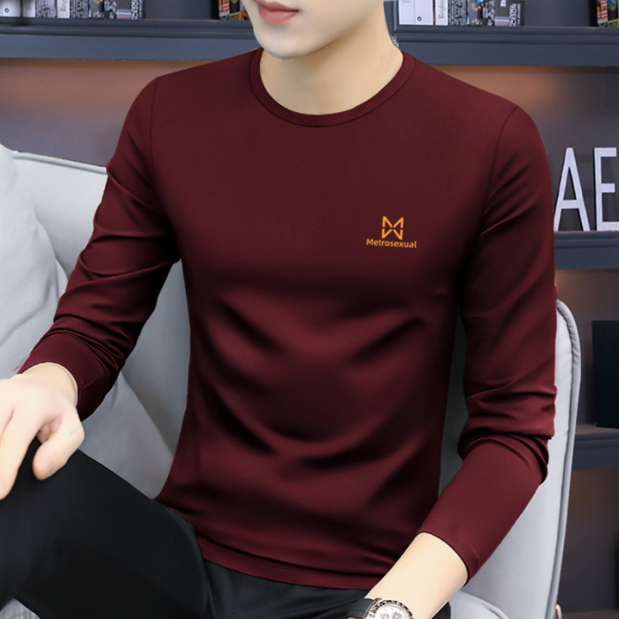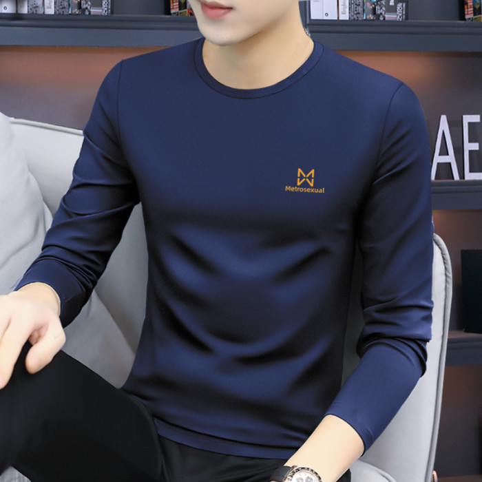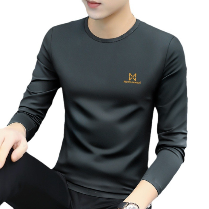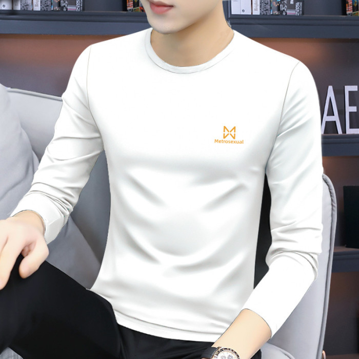莫代爾春季新款男裝男士長袖t恤薄款打底衫白色圓領體恤內搭秋衣