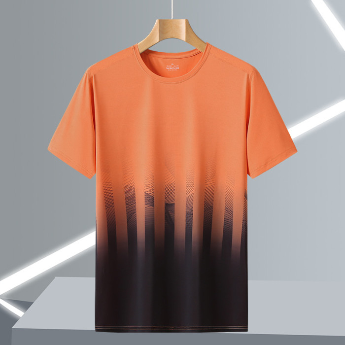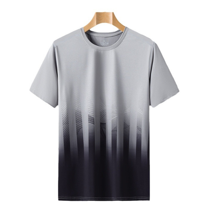 2025夏季新款冰絲T恤男大碼寬松漸變印花速乾圓領短袖t恤半袖男裝
