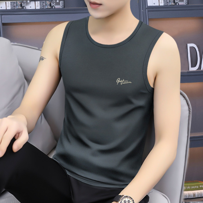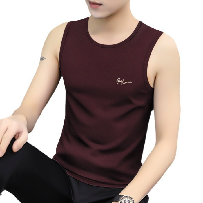 冰絲莫代爾男士背心夏季男裝透氣運動健身緊身無袖t恤坎肩老頭衫