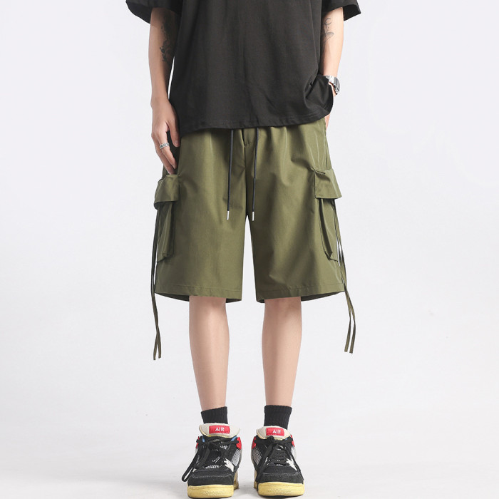 機能黑色工裝短褲男士夏季薄款寬松休閒青少年中褲美式速乾五分褲