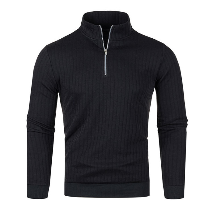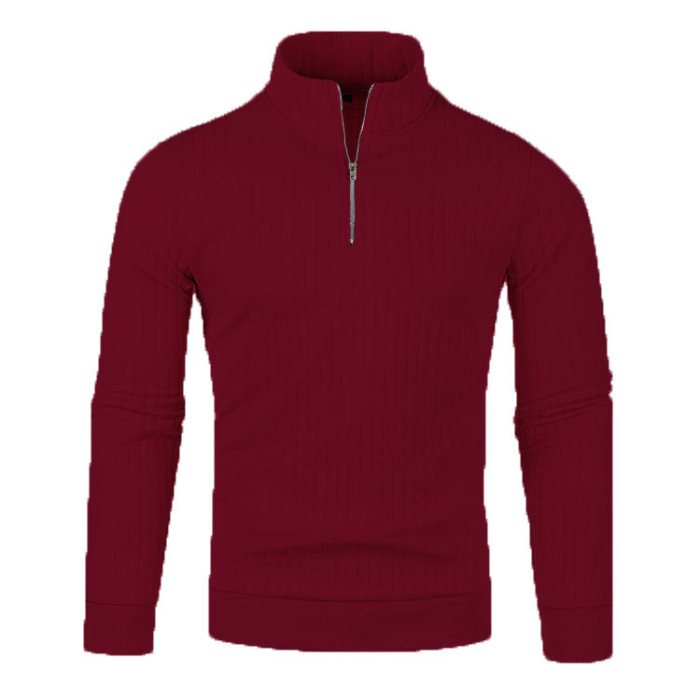 男士半高領拉鍊針織衫毛衣男秋季寬松毛衣休閒套頭長袖針織衫(1