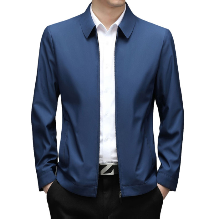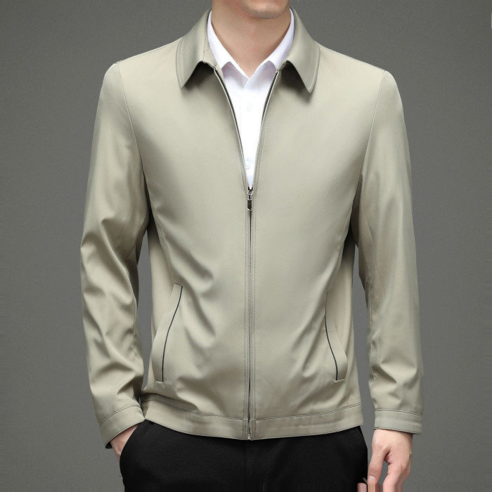 2025新款商務休閒夾克男士翻領上衣中老年時尚外套中年春秋爸爸裝