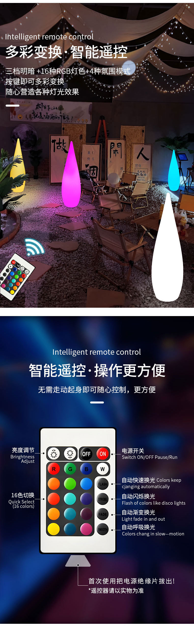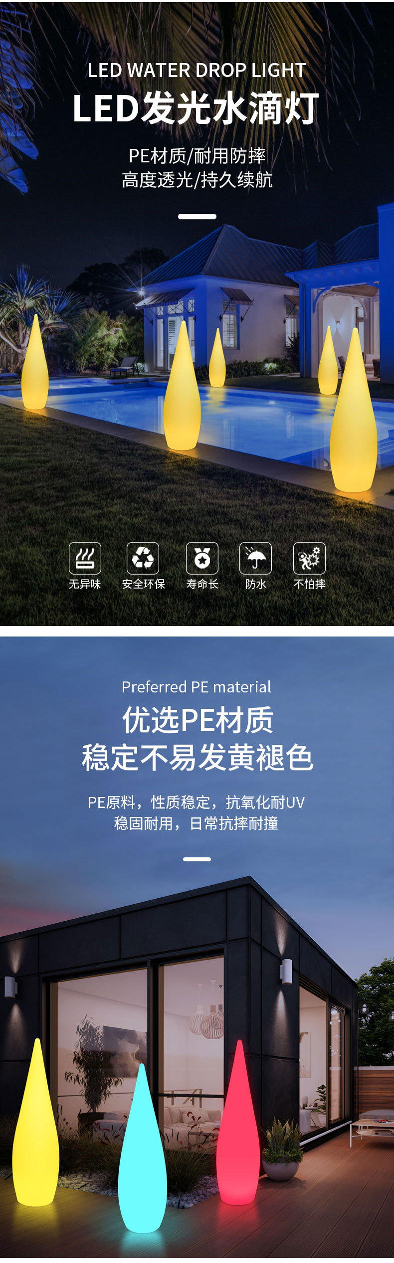 led發光水滴燈酒店戶外裝飾落地燈七彩景觀燈庭院別墅泳池引路燈