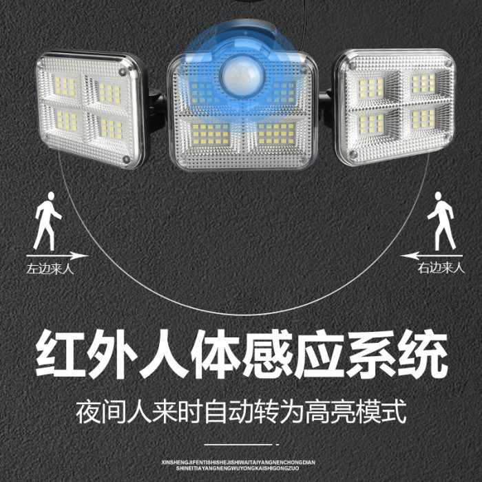 新款三頭太陽能感應燈人體感應室外庭院燈花園燈戶外防水路燈