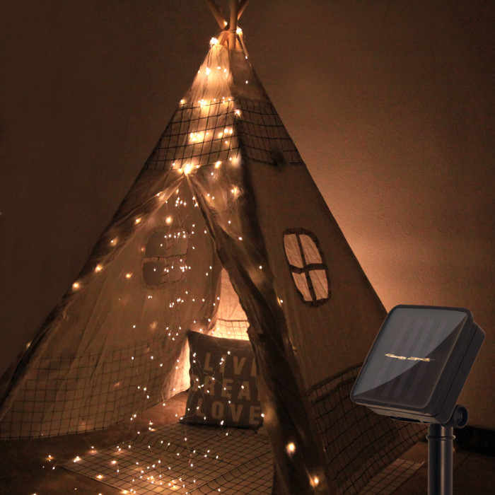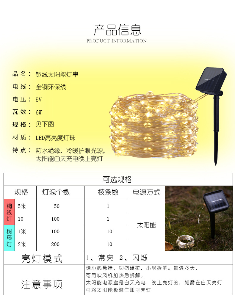 太陽能燈串銅線串串燈聖誕戶外露營庭院裝飾聲控皮線LED彩燈