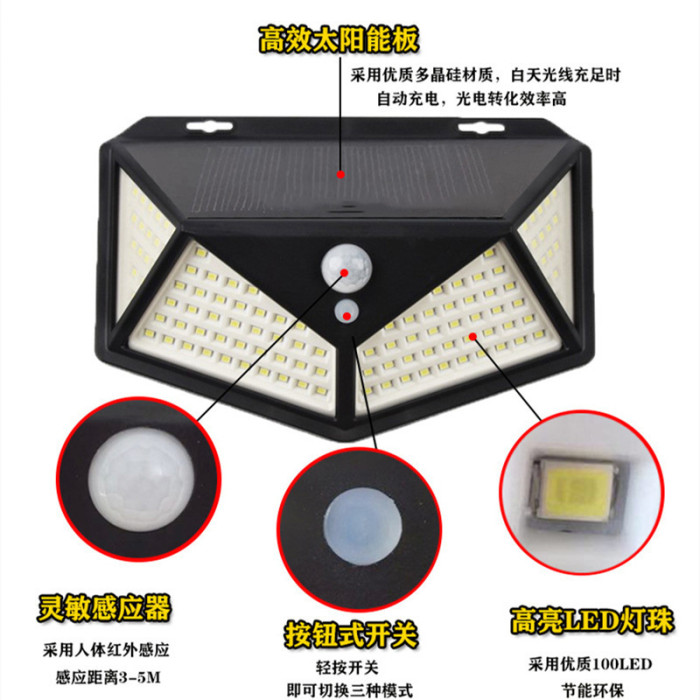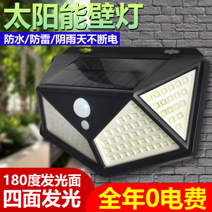 114LED太陽能壁燈四面發光爆款戶外人體感應路燈別墅庭院燈