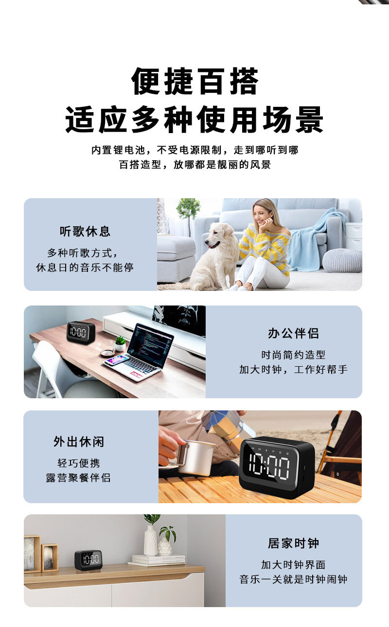藍牙音箱多功能時鍾閙鍾新款藍牙音響中秋禮品藍牙音響
