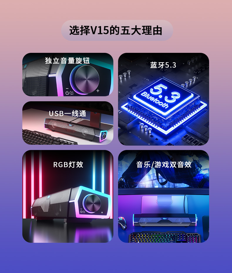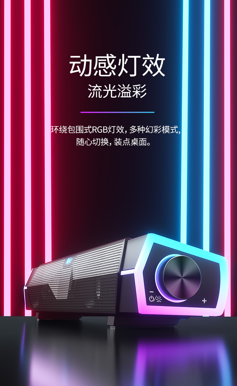 耐也藍牙電腦音響桌上型家用辦公有線電競遊戯長條低音砲藍牙音箱