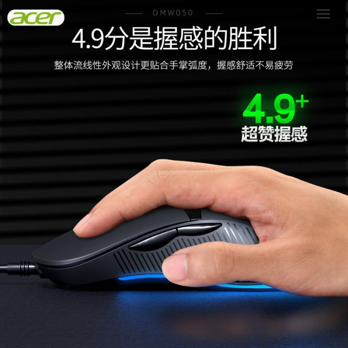 宏基M214有線遊戯電競發光滑鼠 宏定義3200DPI可調節桌上型機筆電