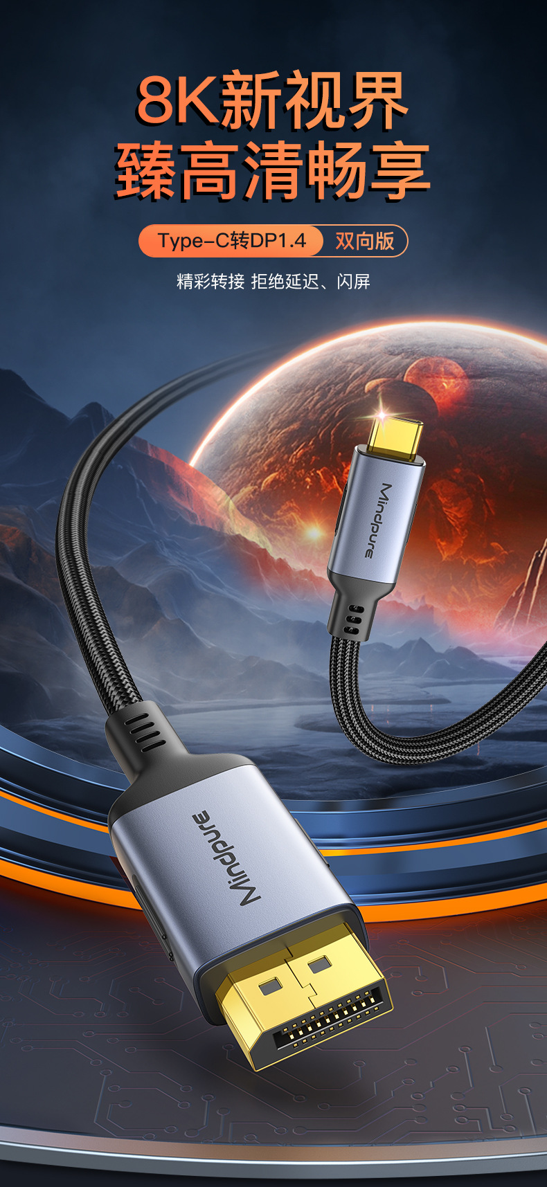 顔色 | AD054 Type-C轉DP 8K60HZ 轉接線 |