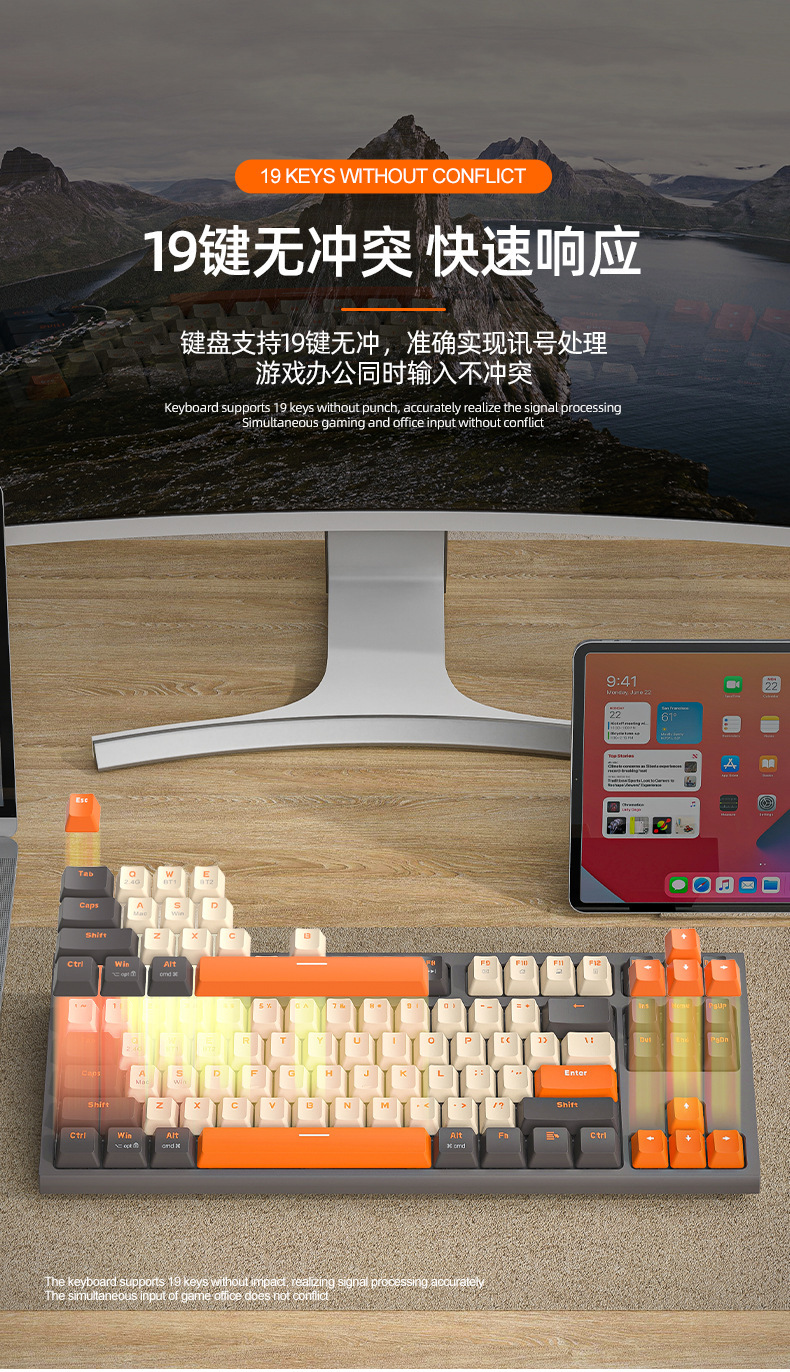 顔色 | M88無線藍牙雙模機械鍵磐嬭酪紅軸 |