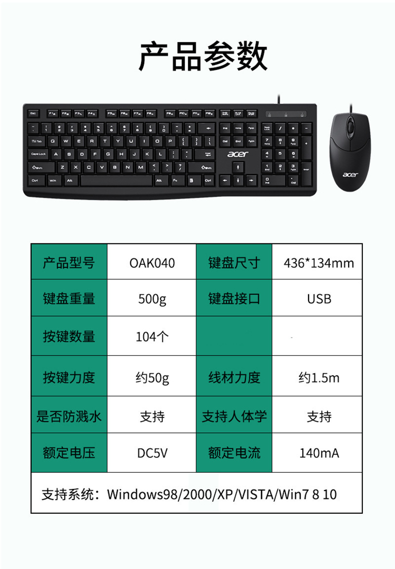 A適用OAK040鍵盤滑鼠套裝USB有線辦公多媒體 適用電腦商務