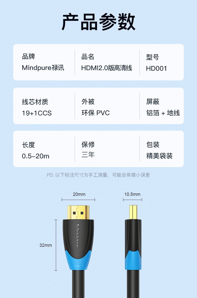 顔色 | HD001 4K HDMI高清連接線 藍黑款圓線 |