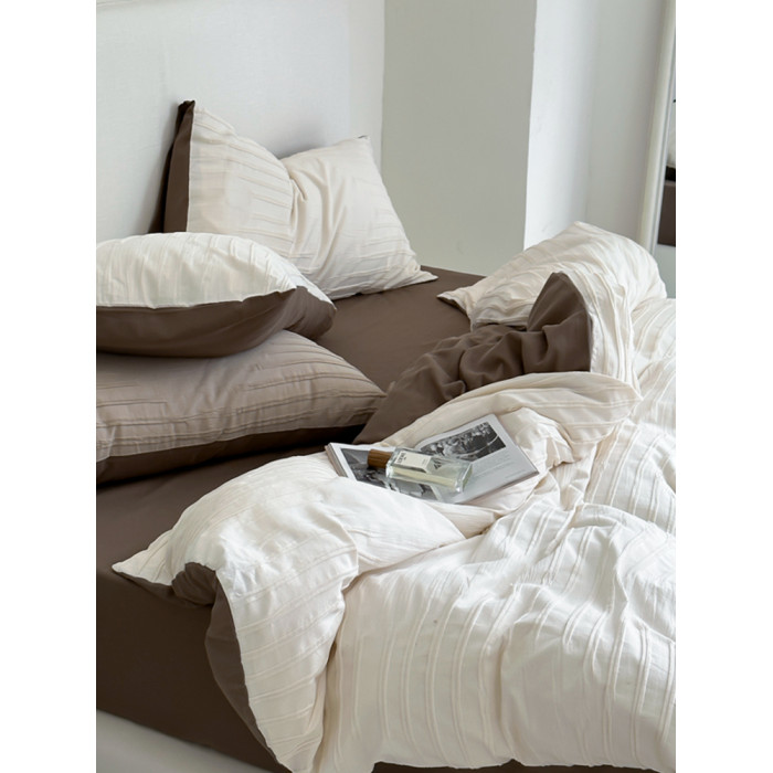單品A類60支純棉被套枕套三件套侘寂日式風肌理大提花2x2.3米被罩