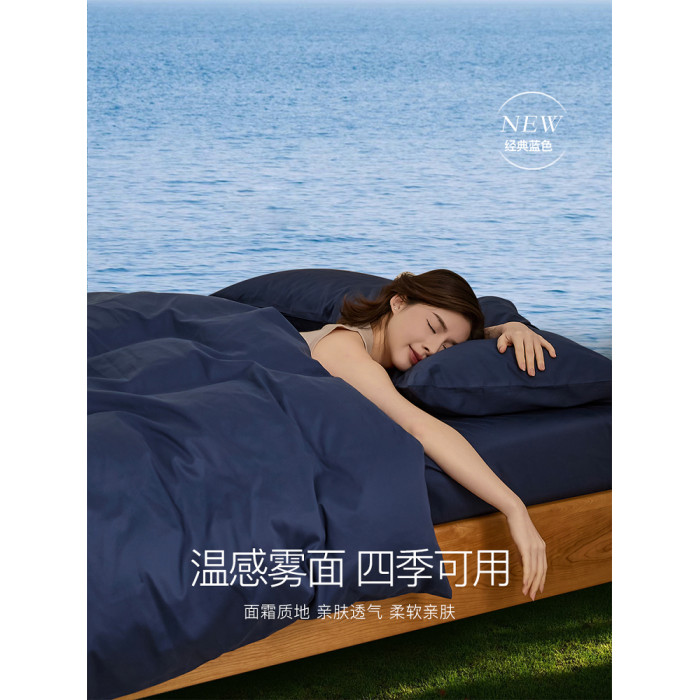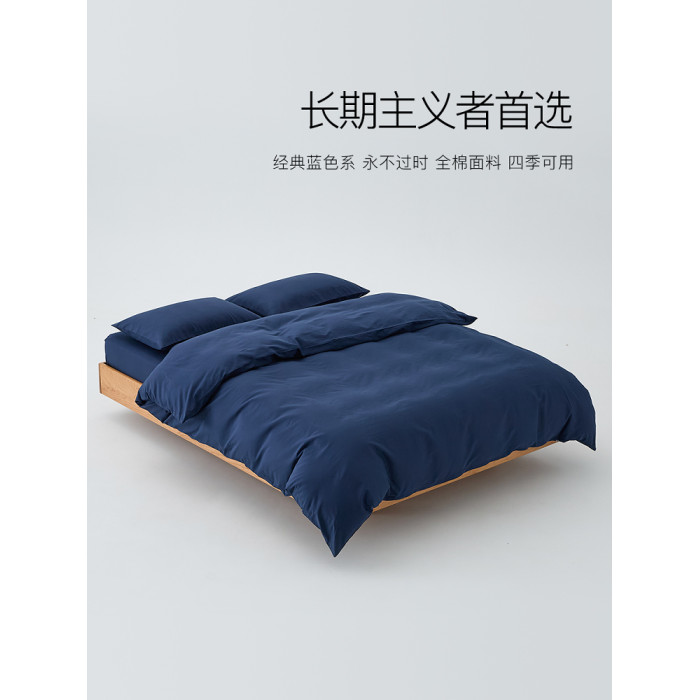 經典簡約深藍色A類碳素磨毛純棉被套四件套全棉貢緞藍色被罩男生