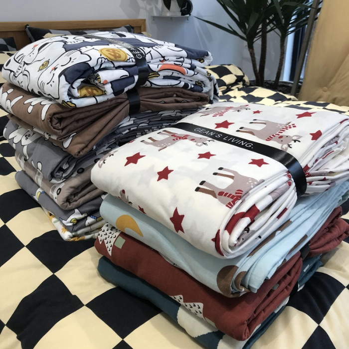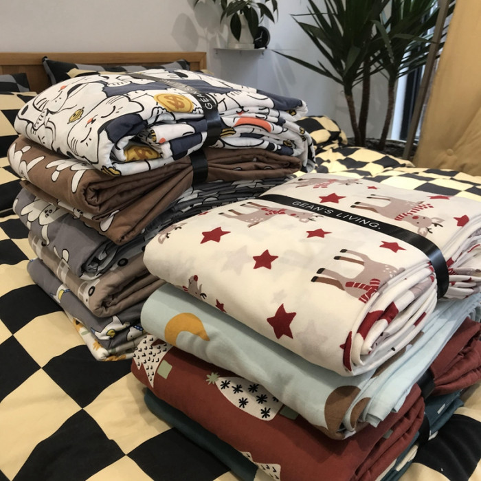 ins日式簡約全棉天竺棉被套單件針織棉澳棉兔子卡通條紋雙人被套