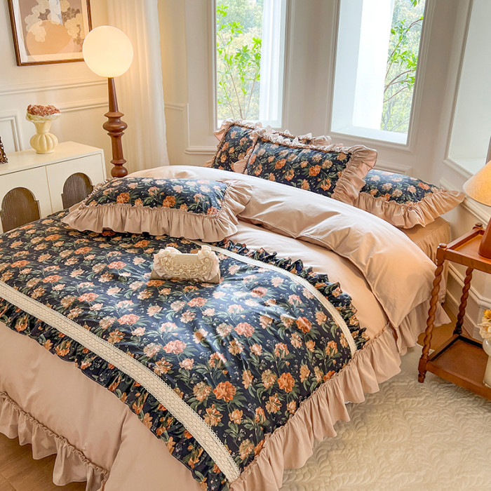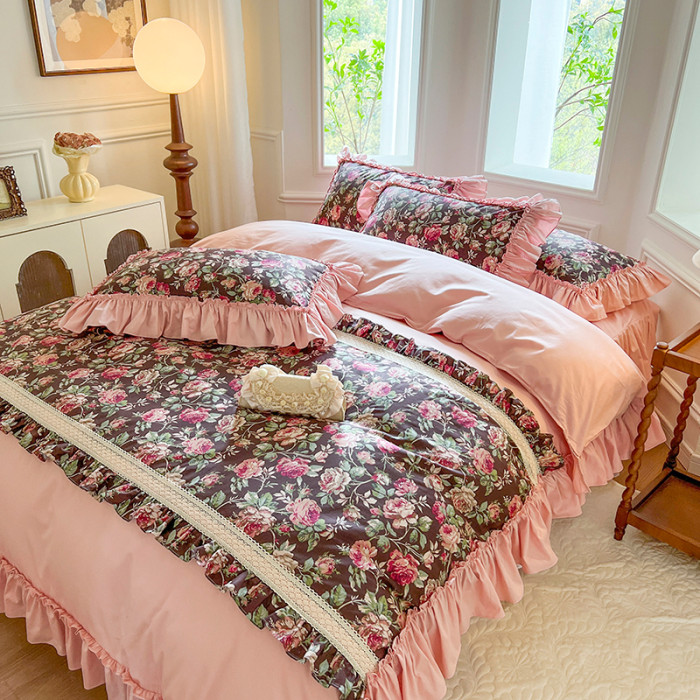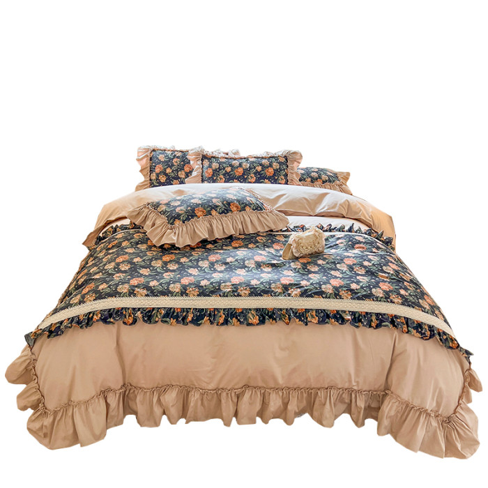 全棉韓版公主風被套單件荷葉邊純棉被罩三四件套少女心床上用品春