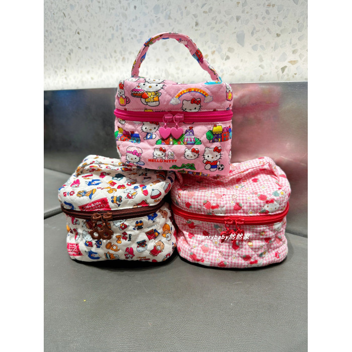 日系可愛Kitty手作棉布手提化妝包立體洗漱包旅行i收納包