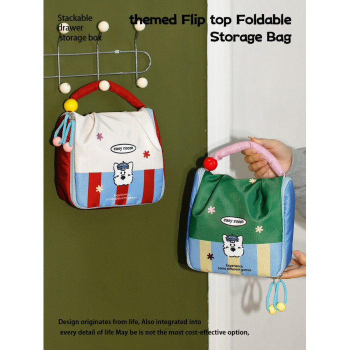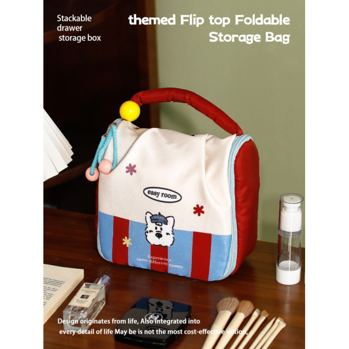 藍紅粗條紋HuHu小狗繙蓋小化妝收納包