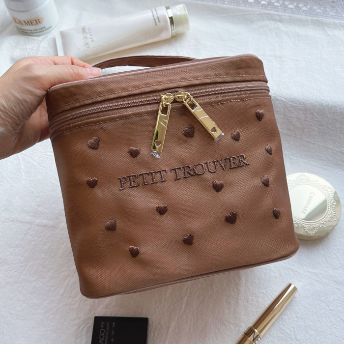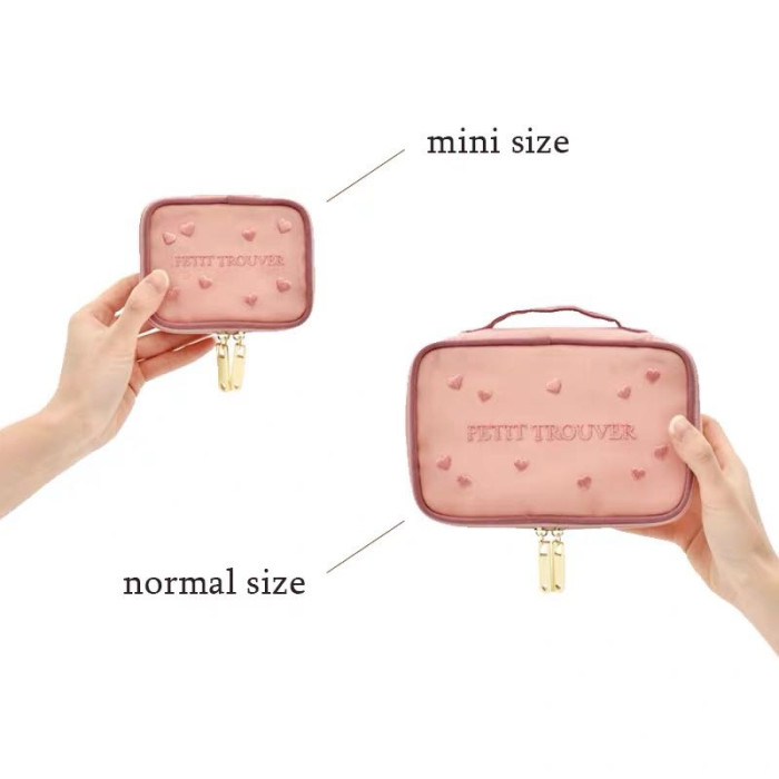 PETIT TROUVER愛心刺綉網紗百搭款化妝包大小號 襍物包口紅包收納