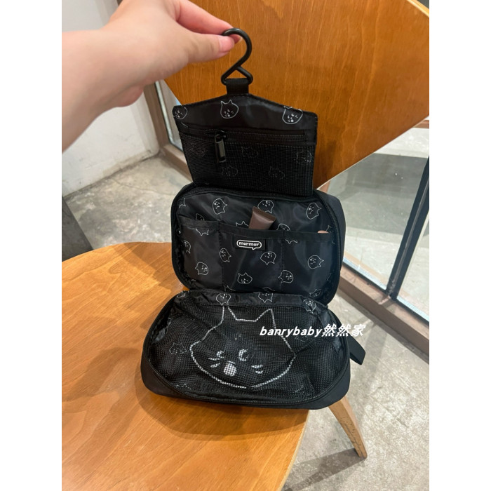 日系可愛驚訝貓大容量洗漱包可攜式折曡旅行化妝收納包