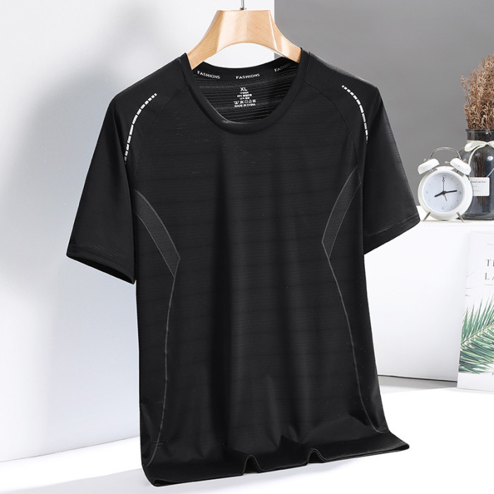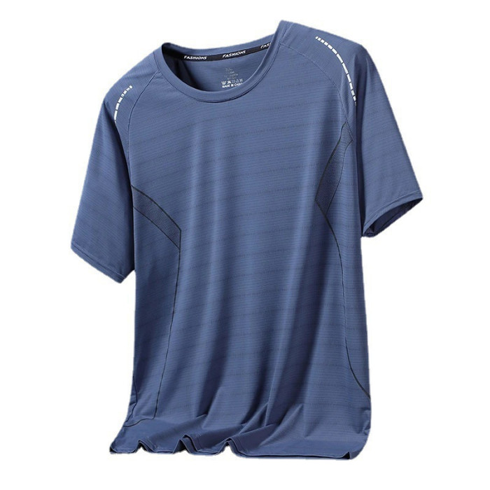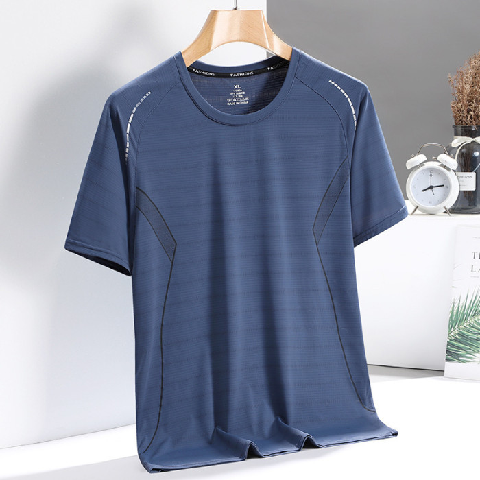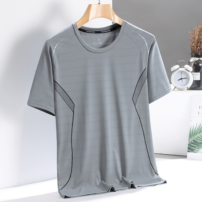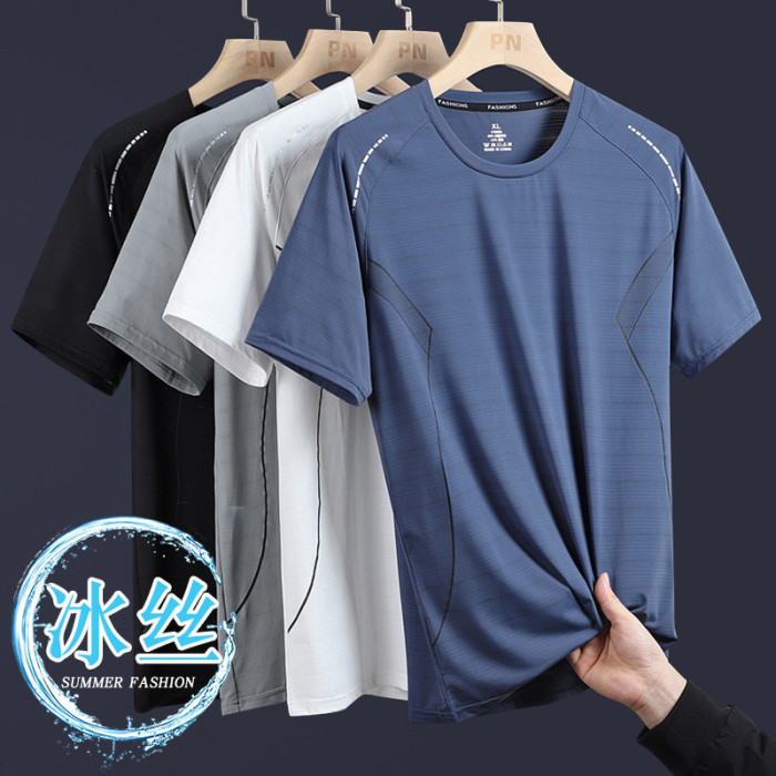 薄款冰絲短袖t恤男士夏季透氣運動健身訓練速乾半袖中年爸爸夏裝