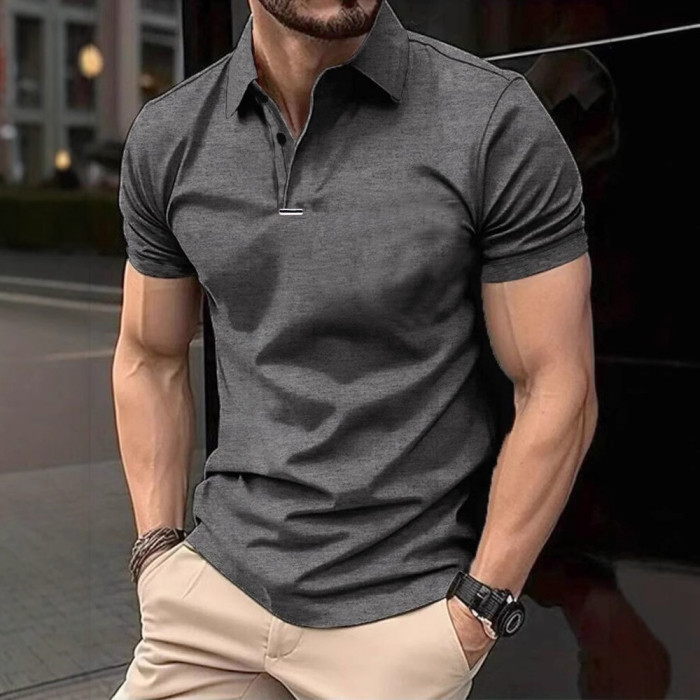 男士新款夏季T恤簡約時尚百搭短袖t恤純色翻領短袖