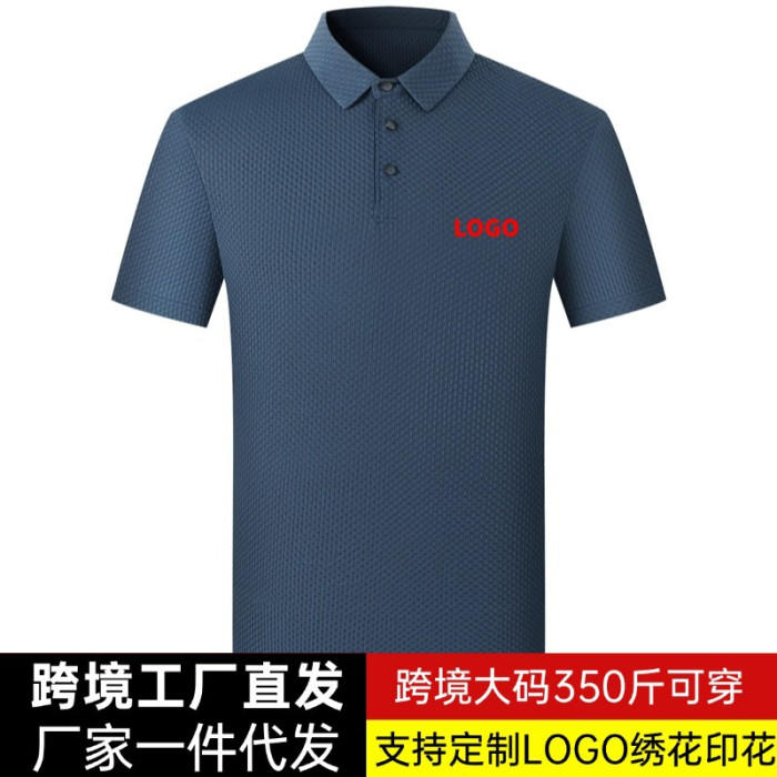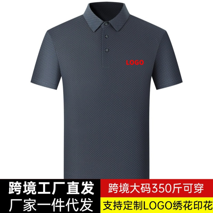 大碼400斤可穿夏季冰絲男士polo衫男式提花免燙短袖T恤衫