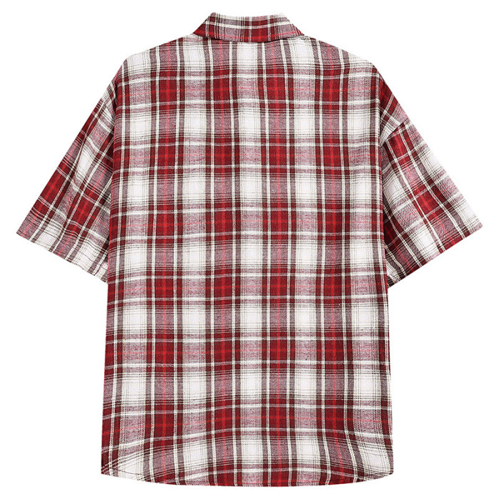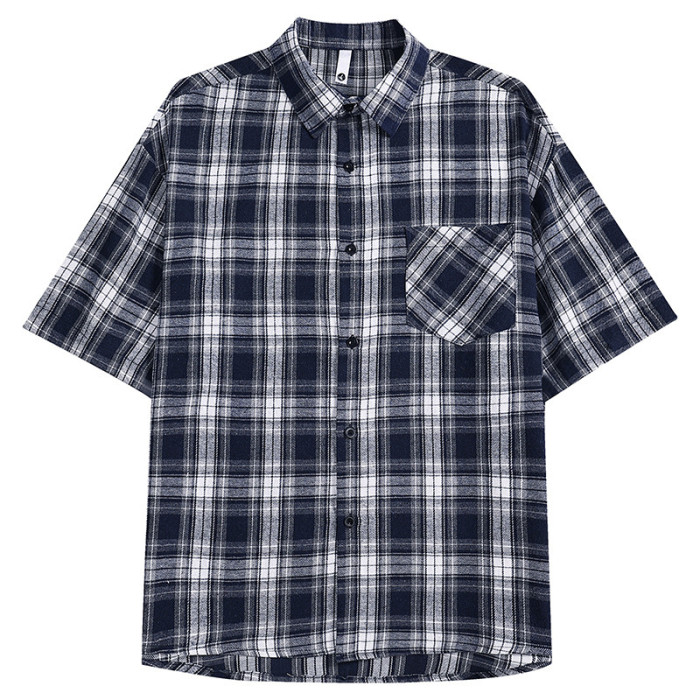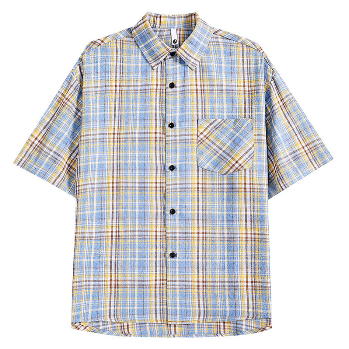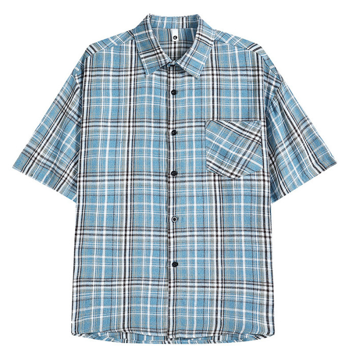 2025短袖格子襯衫男時尚休閒潮版百搭新潮薄款短袖衫