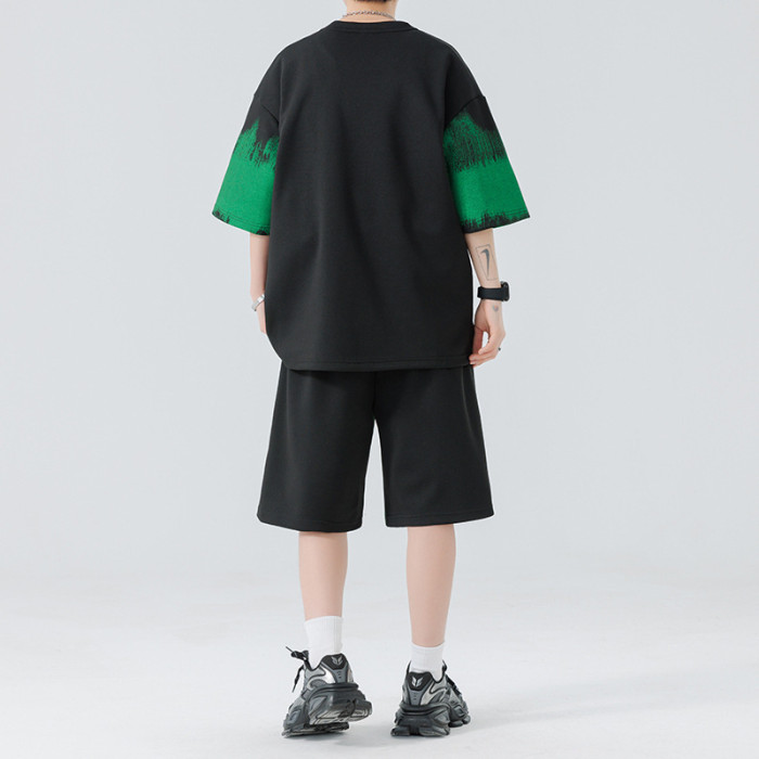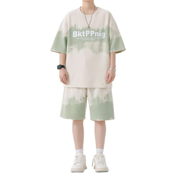 2025休閒運動套裝男夏季潮牌紥染冰絲t恤男青少年短袖短褲搭配一