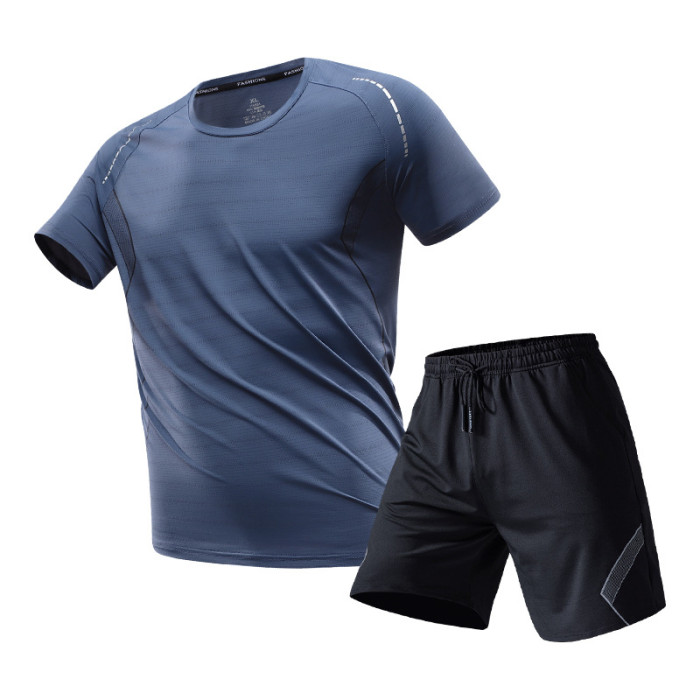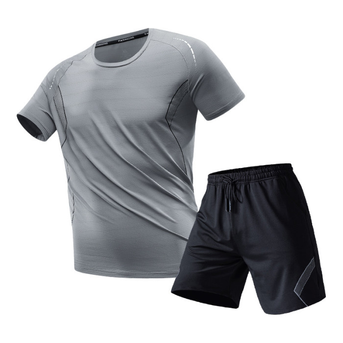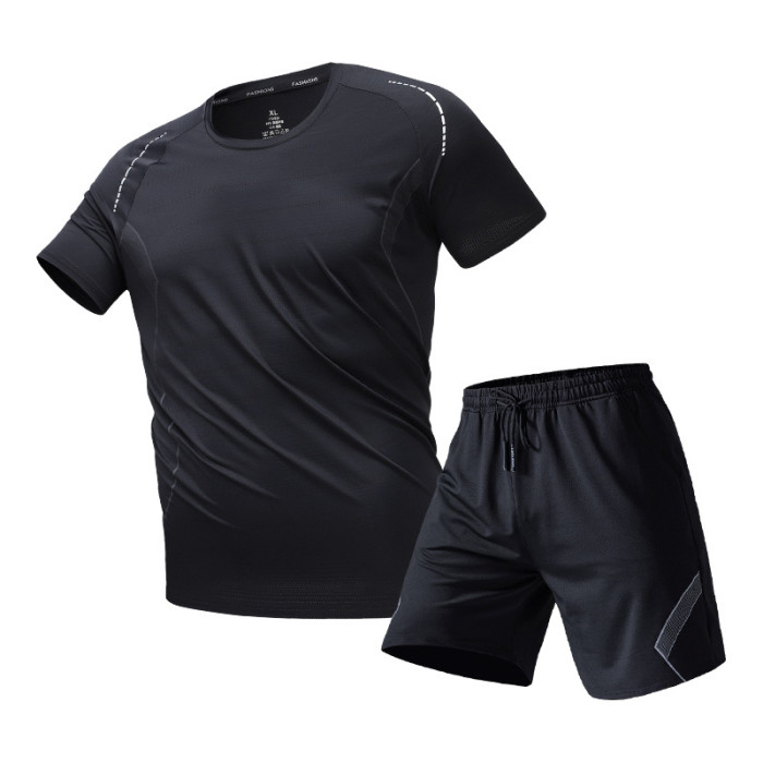 夏季薄款透氣冰絲短袖套裝男彈力涼感T恤短褲休閒兩件套