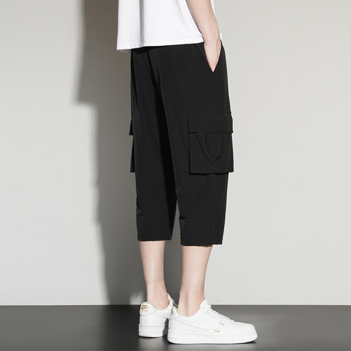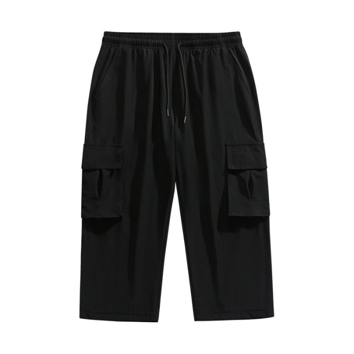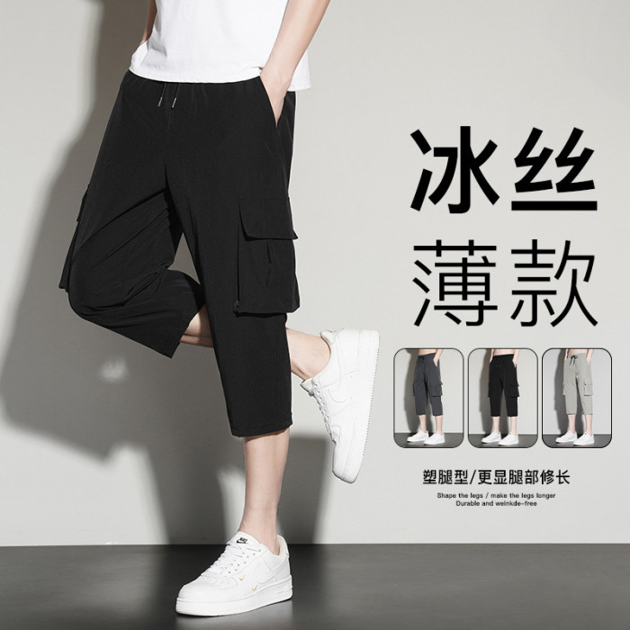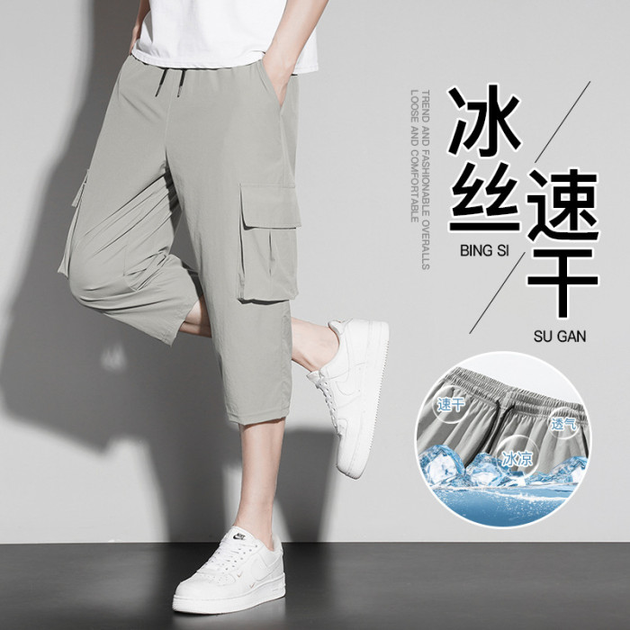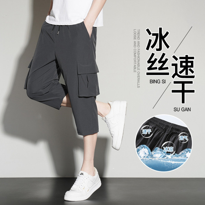 夏季新款冰絲短褲男薄款休閒運動工裝七分褲男速乾立體多袋男短褲