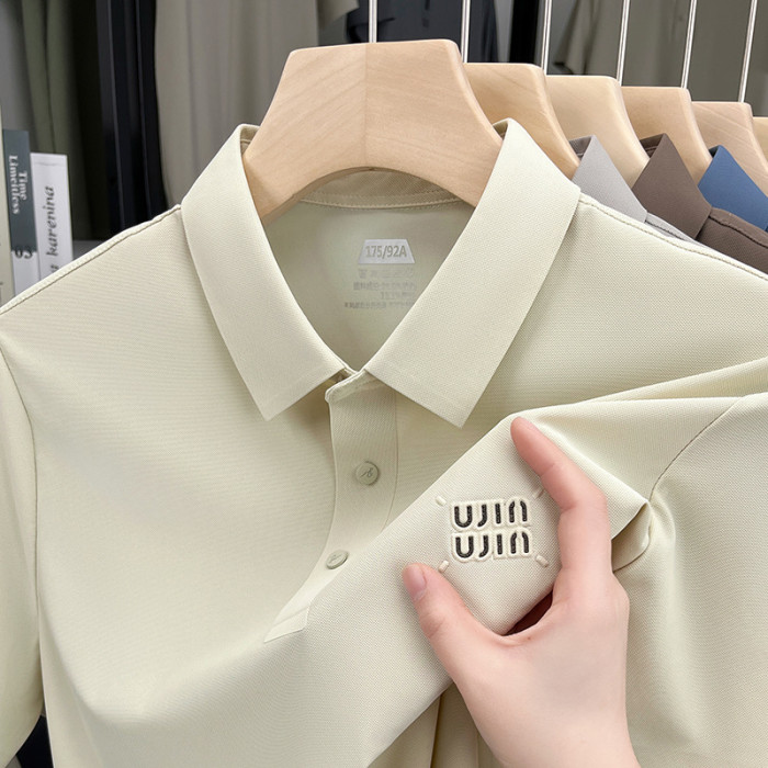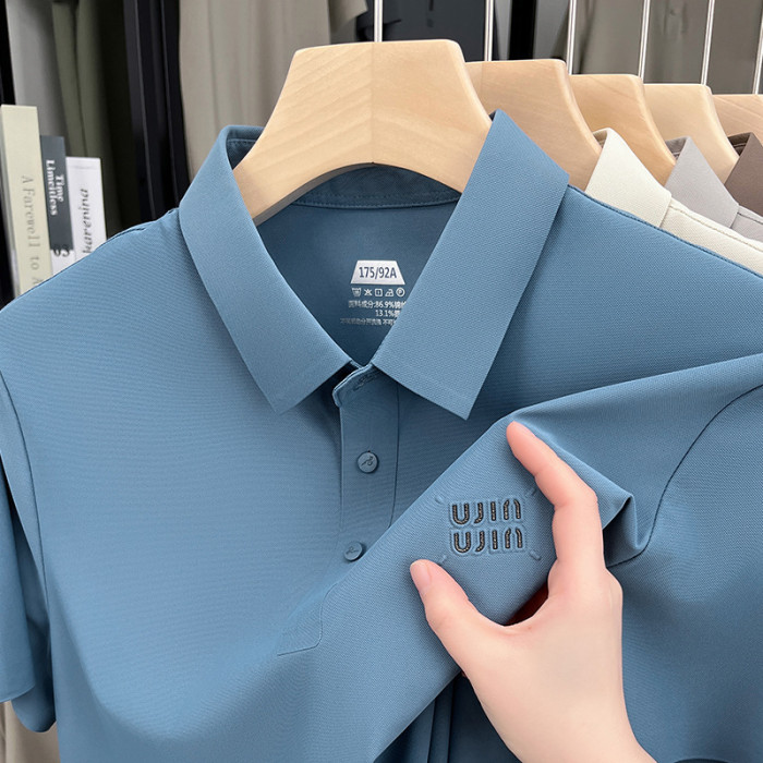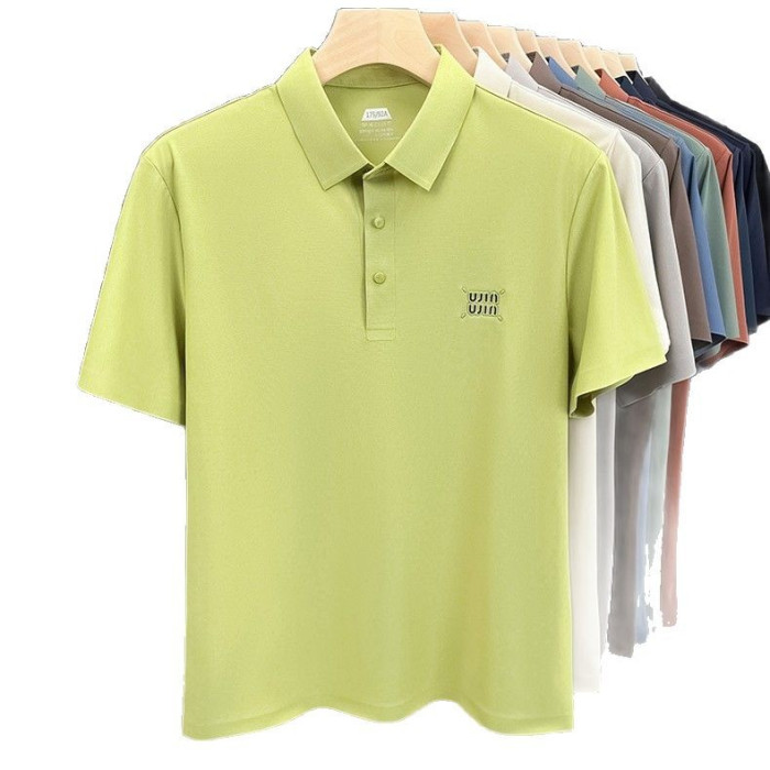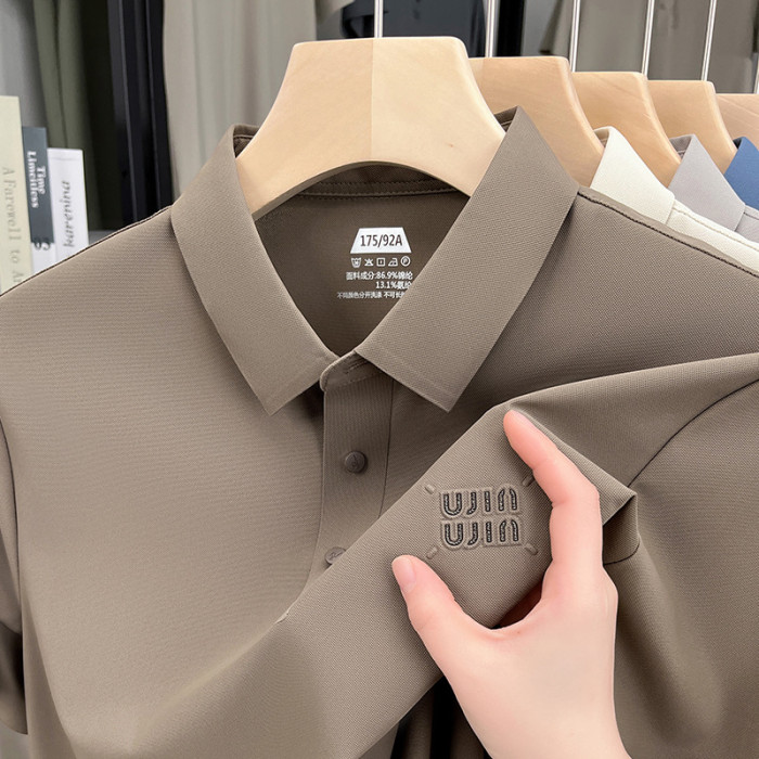 夏季高級感t恤新款冰絲商務休閒男士翻領純色短袖t恤男上衣