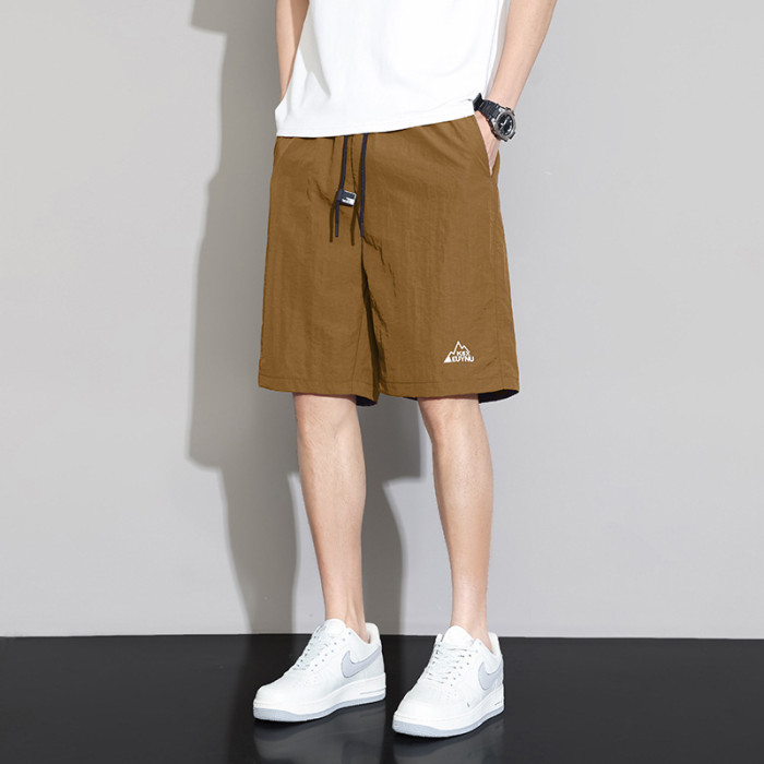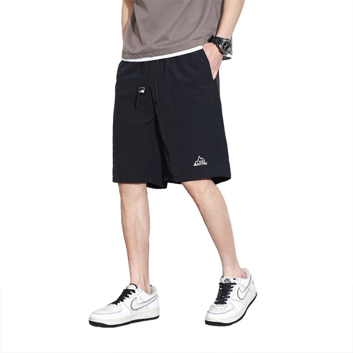 2025新款寬松男生潮流時尚休閒錦綸短褲夏季薄款綉花五分褲男款運
