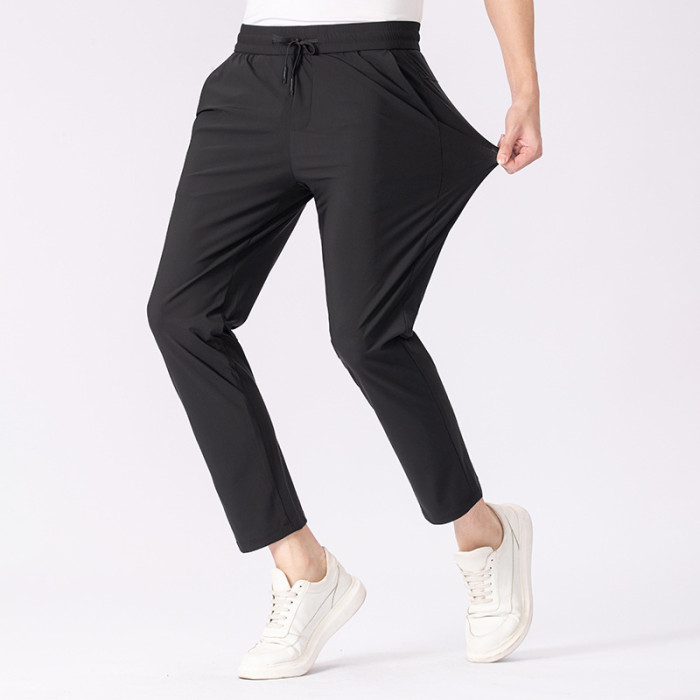 2025夏季無痕冰絲簡約純色男士休閒褲夏季薄款透氣速乾直筒褲子男
