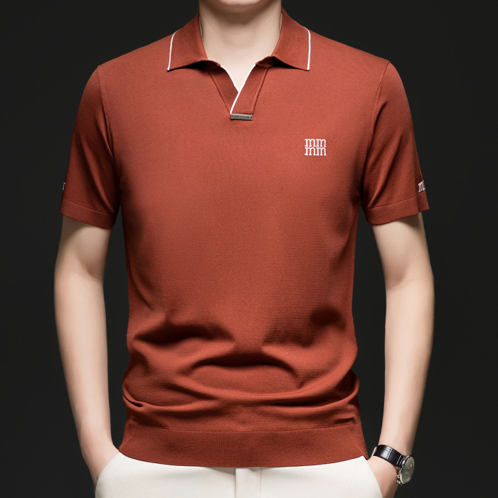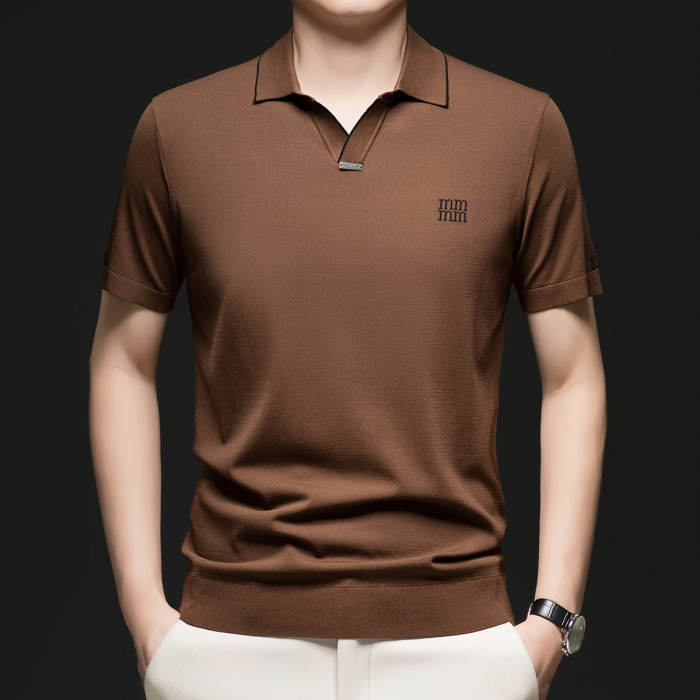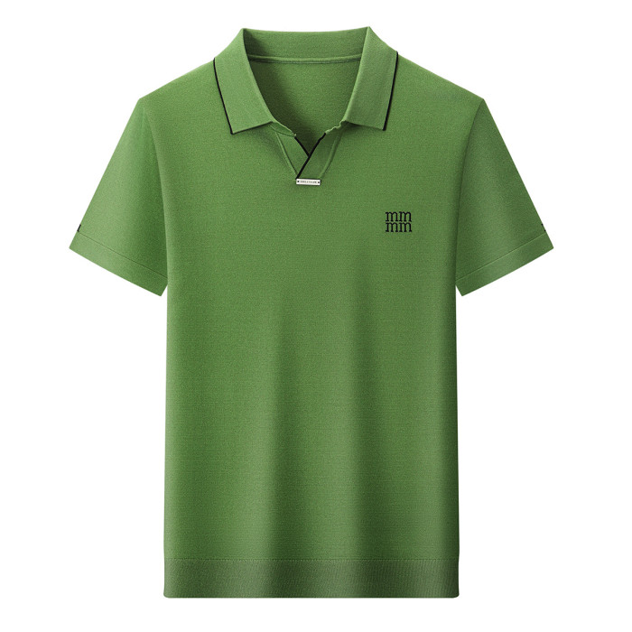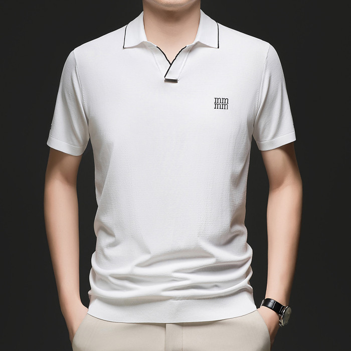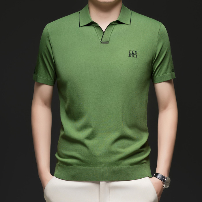 夏季冰絲短袖POLO衫男士夏季翻領純色T恤中年商務休閒男裝代