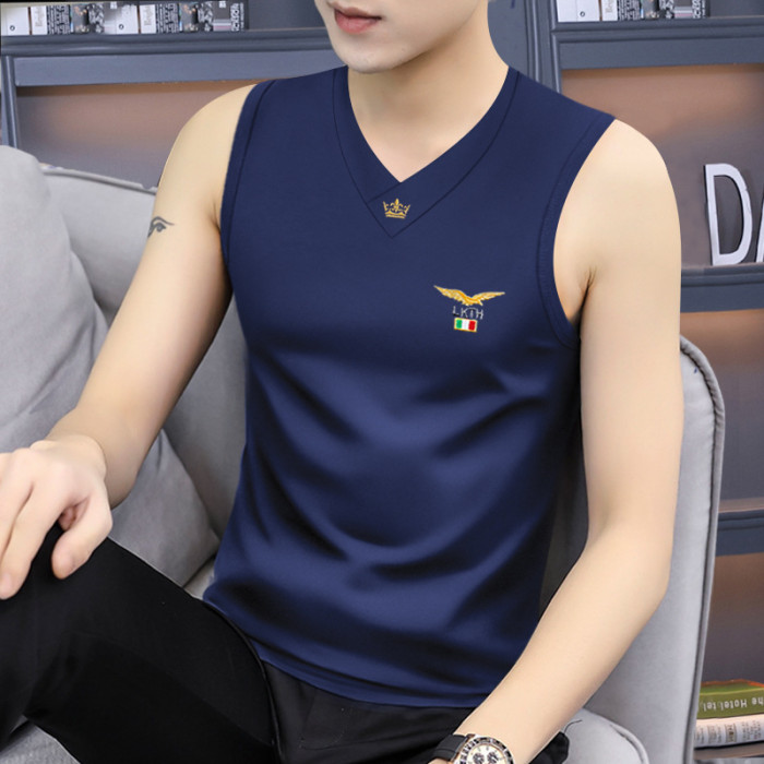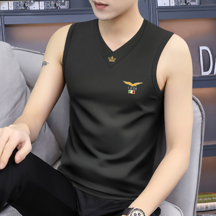 夏季男士寬肩背心無袖打底t恤運動健身背心莫代爾冰絲涼感跑步裝