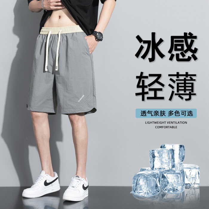 夏季冰絲運動短褲男生夏季百搭休閒五分褲寬松直筒籃球美式大褲衩