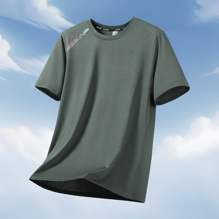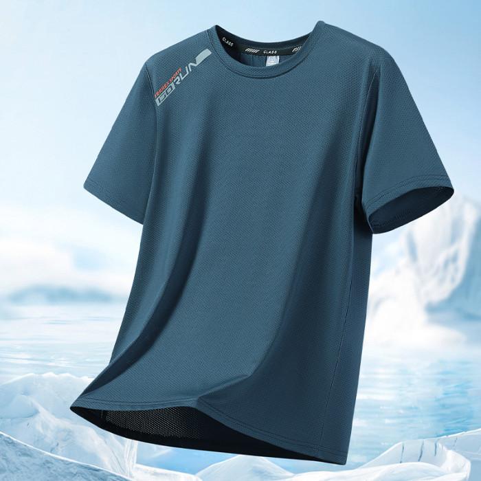 M-12XL大碼夏季冰絲短袖t恤加肥加大男透氣大碼跑步速乾健身運動