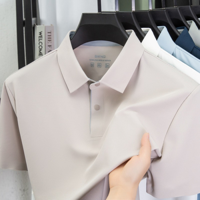 冰絲短袖POLO衫男士高級感夏季薄款全無痕錦氨綸彈力翻領polo