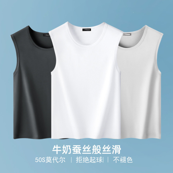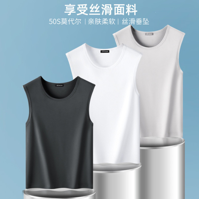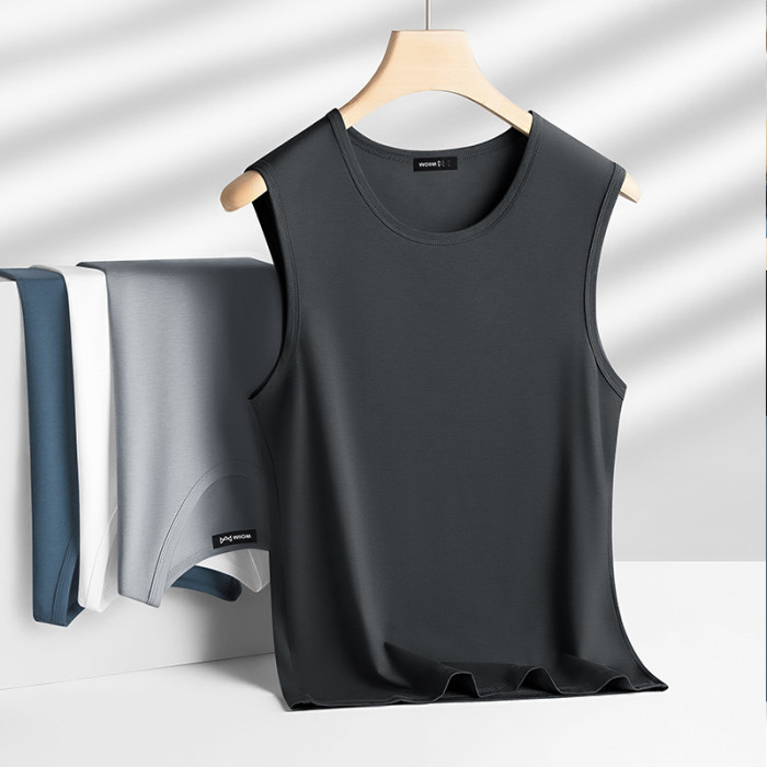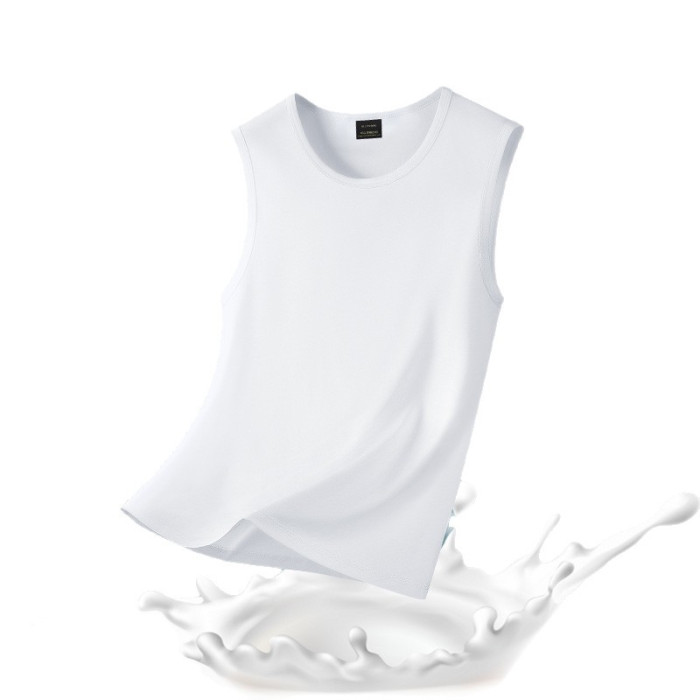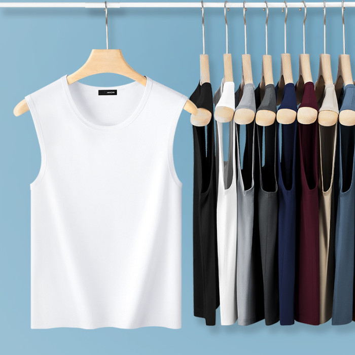2025新款夏季男士圓領寬肩純色背心無袖T恤運動跑步背心坎肩男裝