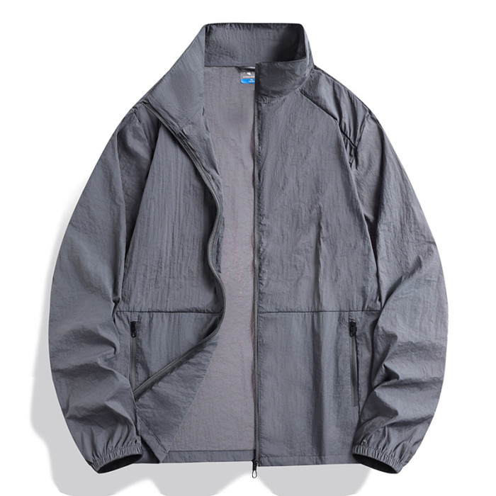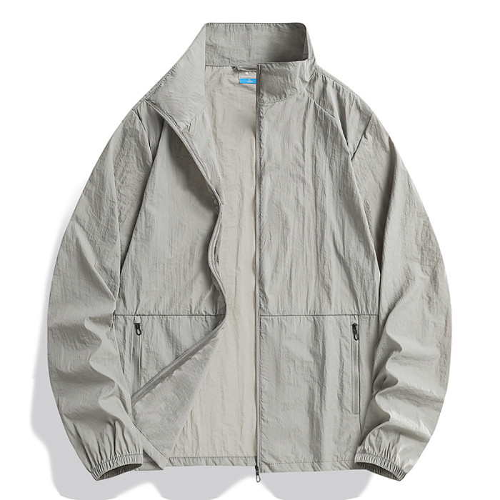 男士外套錦綸尼龍皺新款夏季薄款休閒夾克戶外釣魚防曬衣男生痞帥