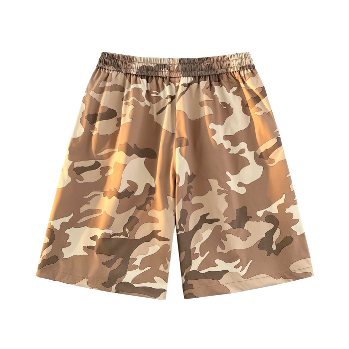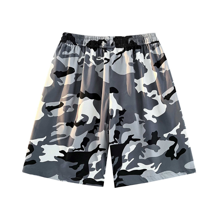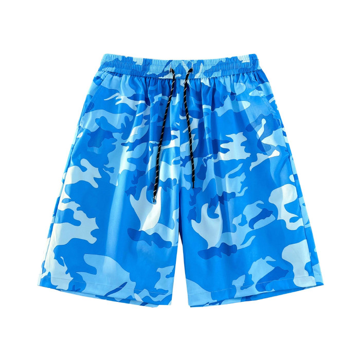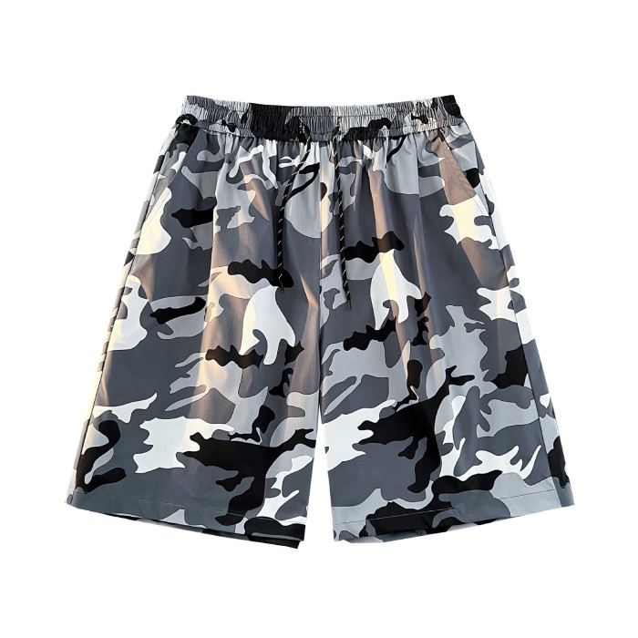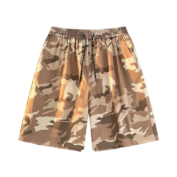 2025漸變抽繩短褲男夏季印花新款寬松休閒潮流百搭短褲