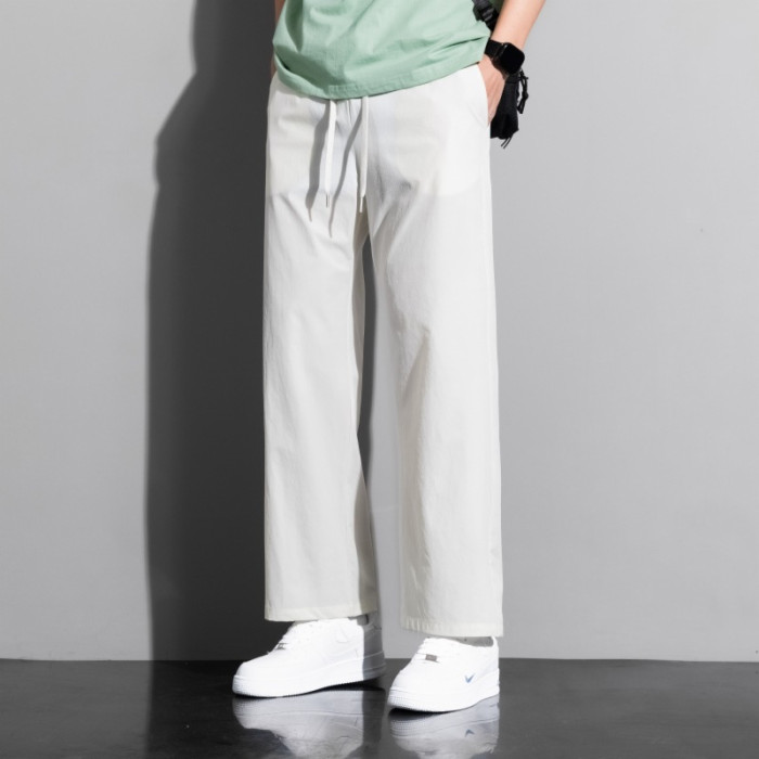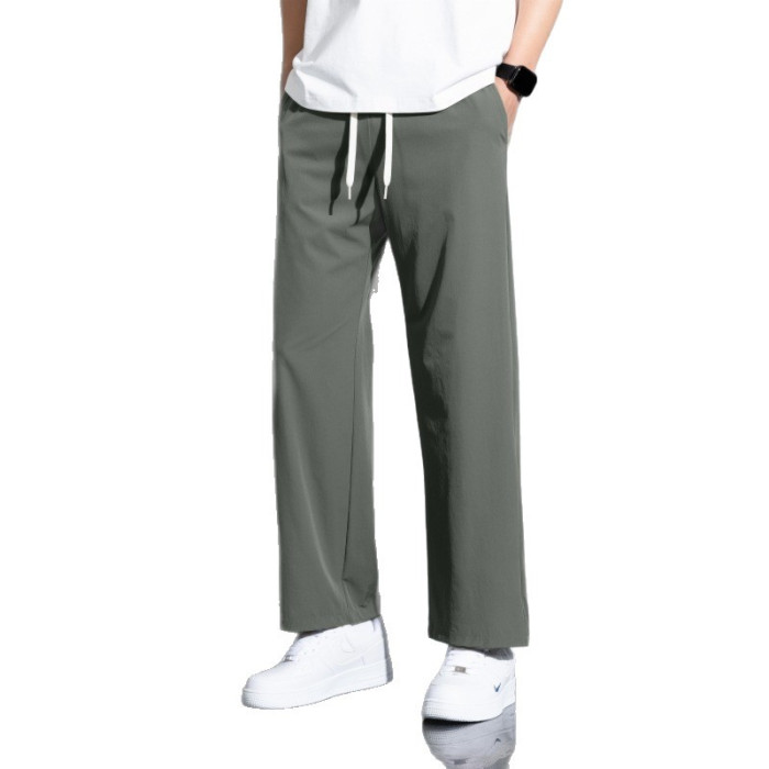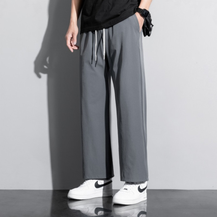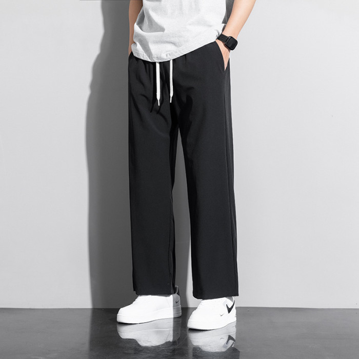 2025新款褲子男新款春秋黑色寬松長褲男士直筒夏季九分運動休閒褲