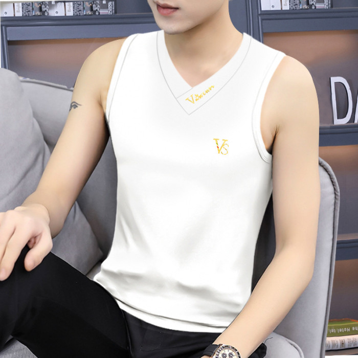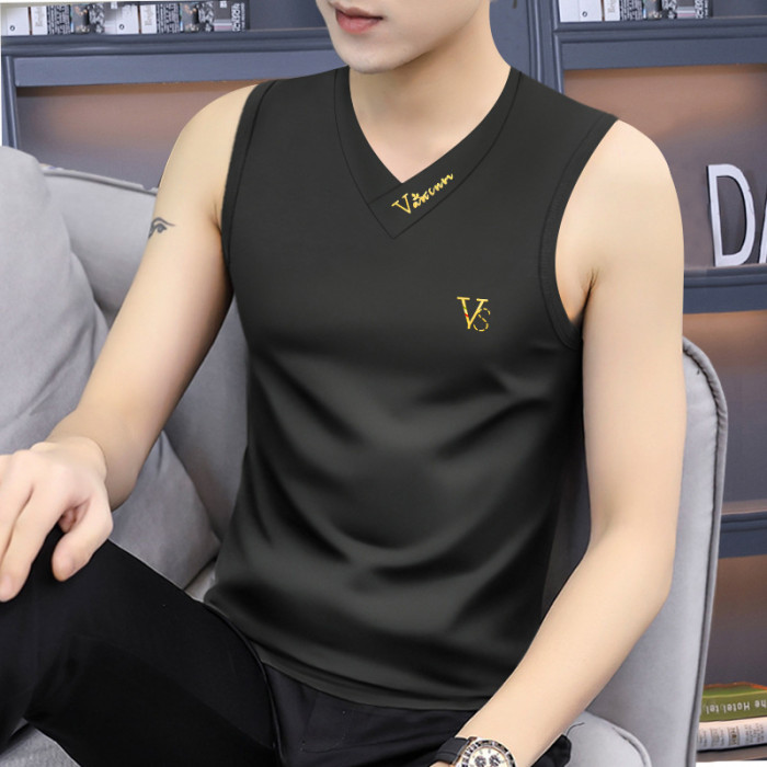 夏季V領背心男士寬肩運動健身無袖T恤速乾透氣涼感打底背心裝